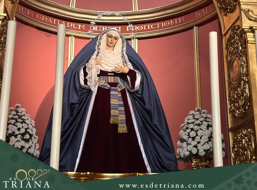 La Virgen del Patrocinio, conocida como la «Señorita de Triana» por su elegancia y finura, es obra de Luis Álvarez Duarte (1973). Sustituyó a la imagen anterior desaparecida en un incendio, logrando recuperar toda la unción y el cariño de los hermanos del Cachorro.